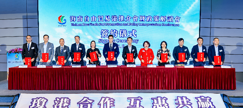 海南龙盘油田科技有限公司、海南现代科技集团有限公司、海南传味文昌鸡产业股份有限公司、海南美裕珠宝有限公司等海南民营企业在会上进行了项目签约,充分利用自贸港政策优势,聚焦船舶保税维修、珠宝加工、餐饮、旅游等多个领域开展国际化发展布局,在助力海南自贸港建设、推动琼港合作互惠共赢中展现民营企业担当。